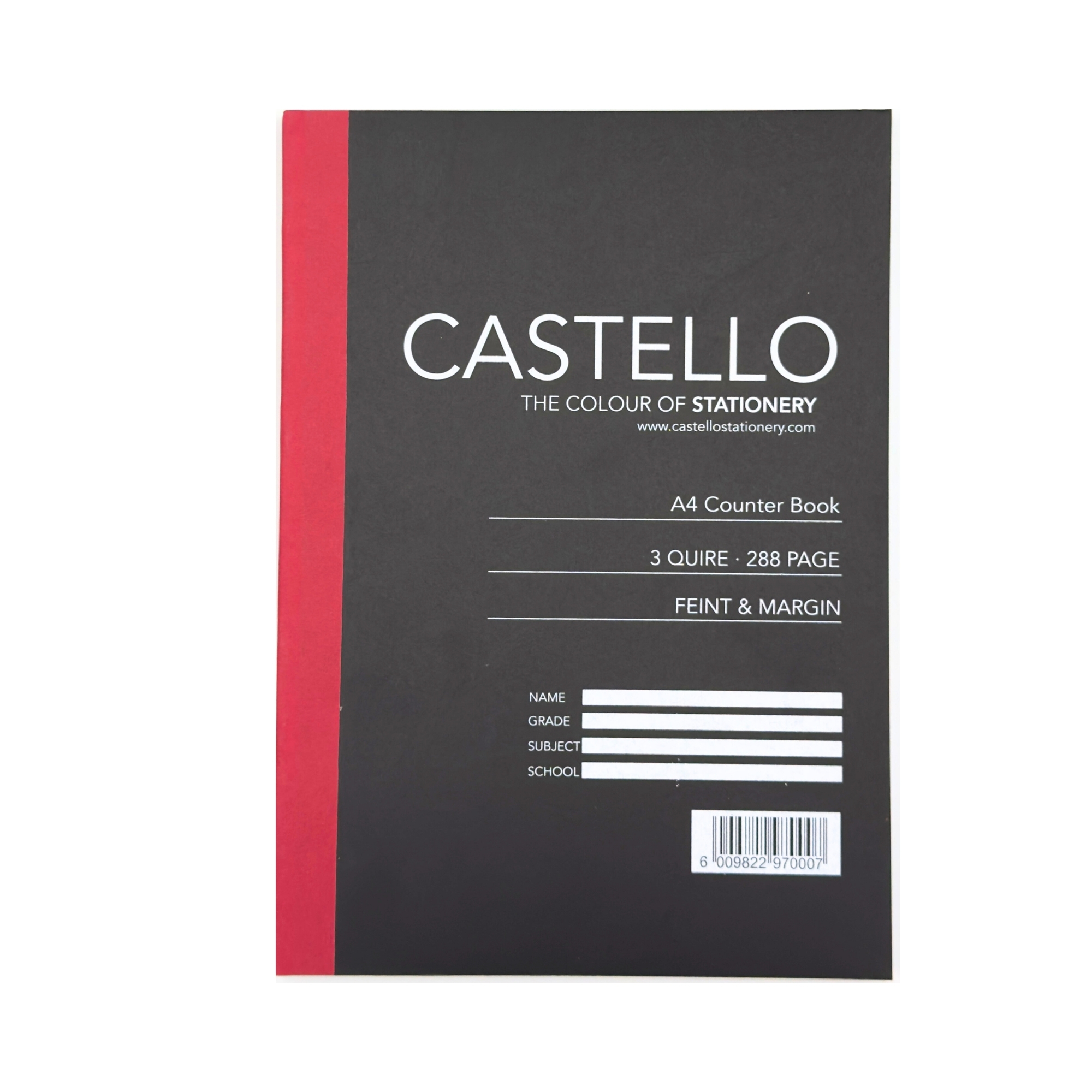 Its A4 size provides generous writing space for detailed work, while the durable construction ensures it can withstand regular handling over time. Whether for school, university, or office use, the Castello 3 Quire book delivers maximum capacity, organisation, and reliability in one essential notebook.