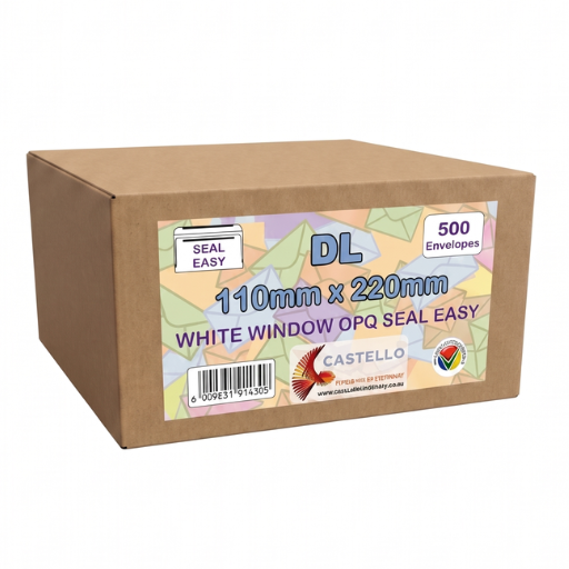 Perfect for offices, businesses, and administrative environments, the Castello DL White Window Self-Seal Envelope combines efficiency, professionalism, and durability for streamlined mailing.