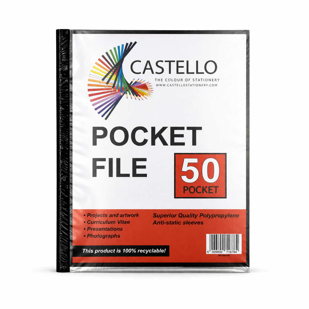 Whether you’re managing schoolwork, office files, or personal paperwork, the Castello Pocket File 50 Page delivers maximum capacity with reliable protection and organisation.